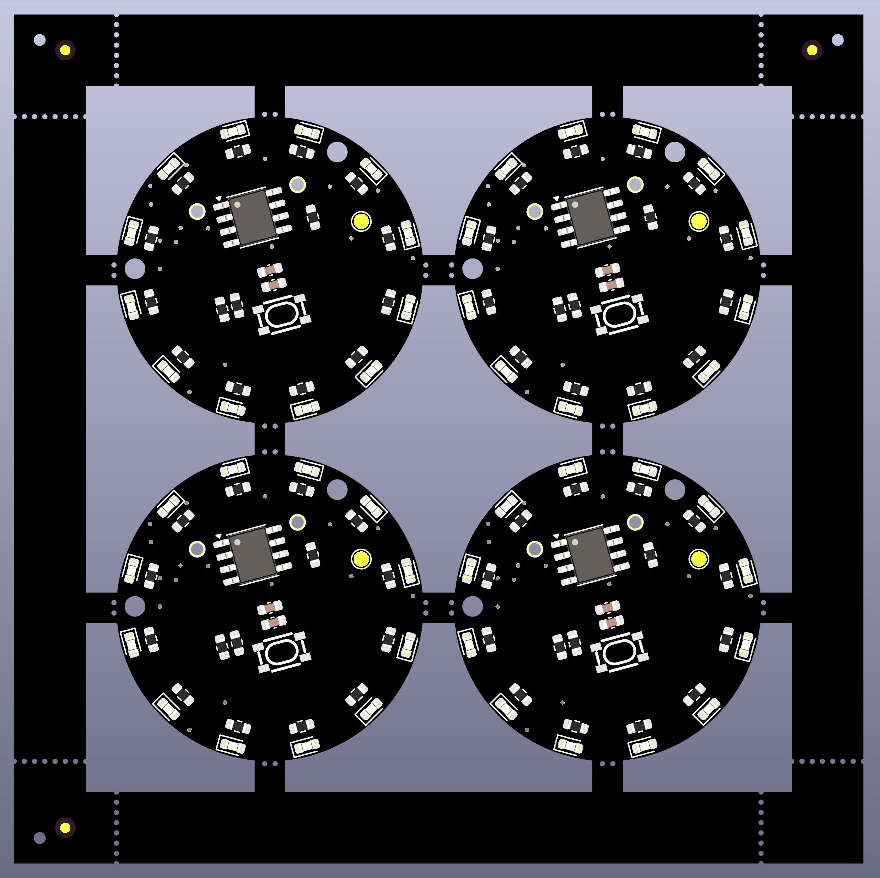 KiCADで設計した円形基板をスクリプトを用いて部品を円形配置し、Freeroutingで配線し、KiKitで面付けしたものをJLCPCBで製造してもらいました!
